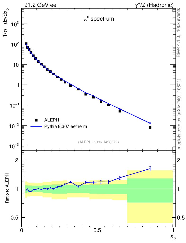 Lines: data, pythia8 8.307 eetherm |