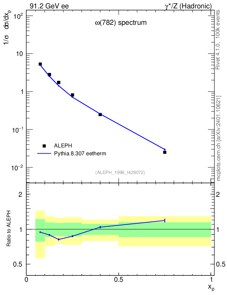 Lines: data, pythia8 8.307 eetherm |