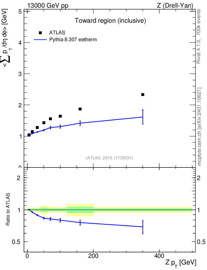 Lines: data, pythia8 8.307 eetherm |