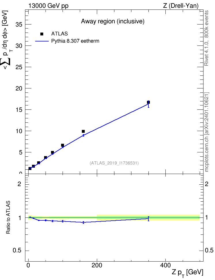 Lines: data, pythia8 8.307 eetherm |