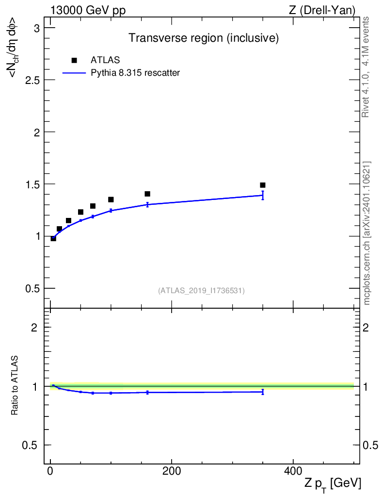 Lines: data, pythia8 8.315 rescatter |