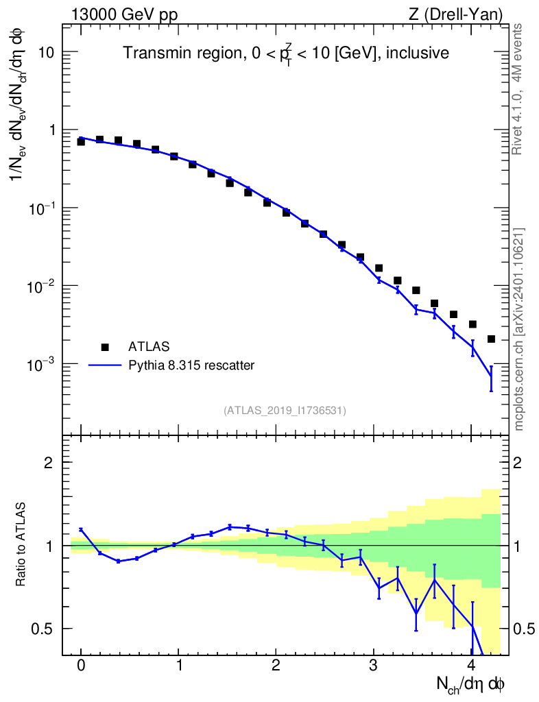 Lines: data, pythia8 8.315 rescatter |