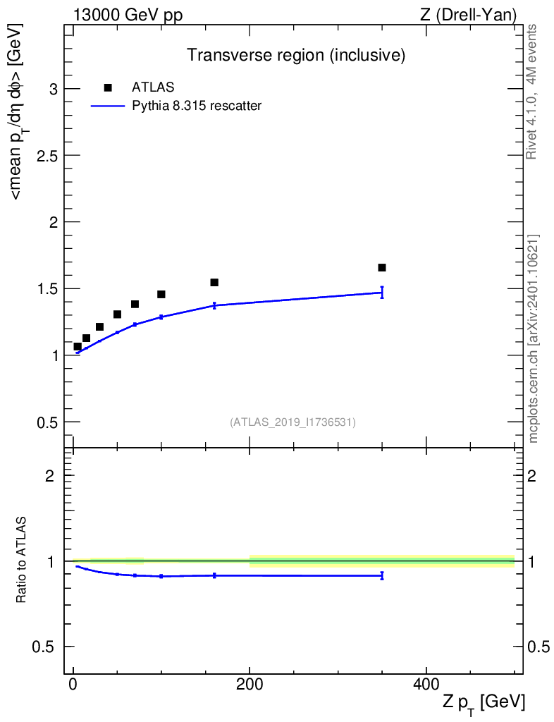 Lines: data, pythia8 8.315 rescatter |
