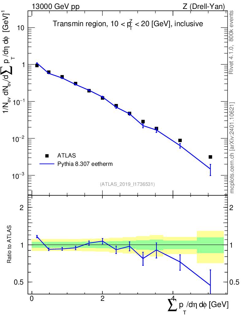 Lines: data, pythia8 8.307 eetherm |