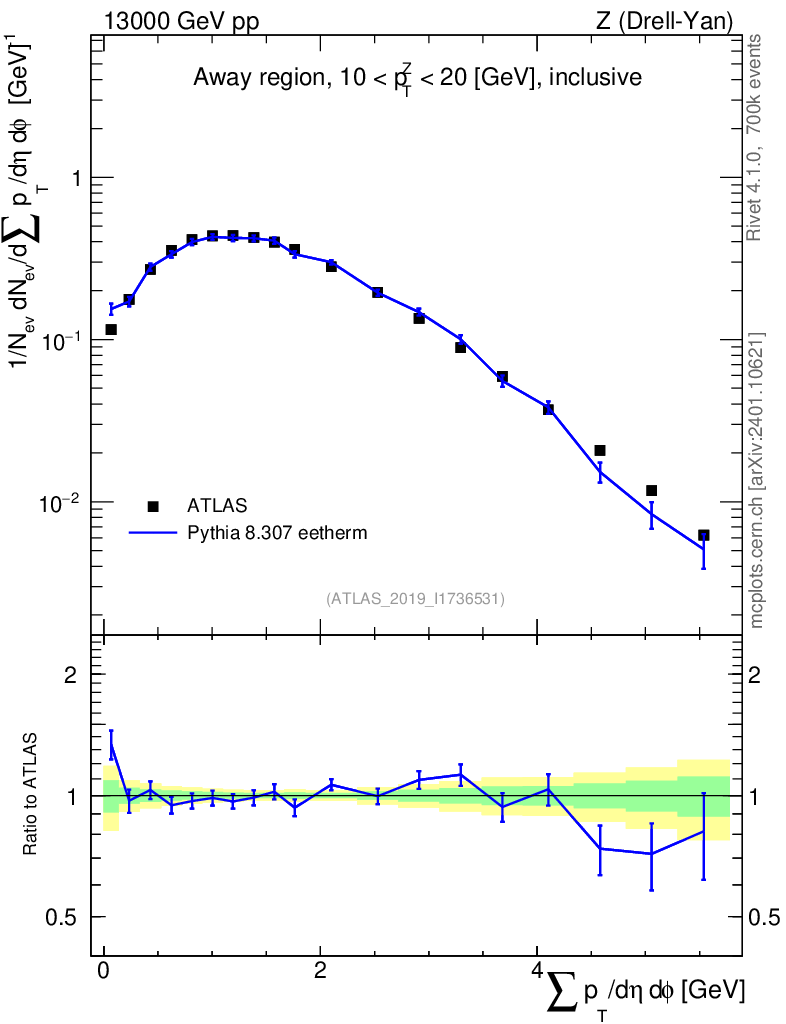Lines: data, pythia8 8.307 eetherm |