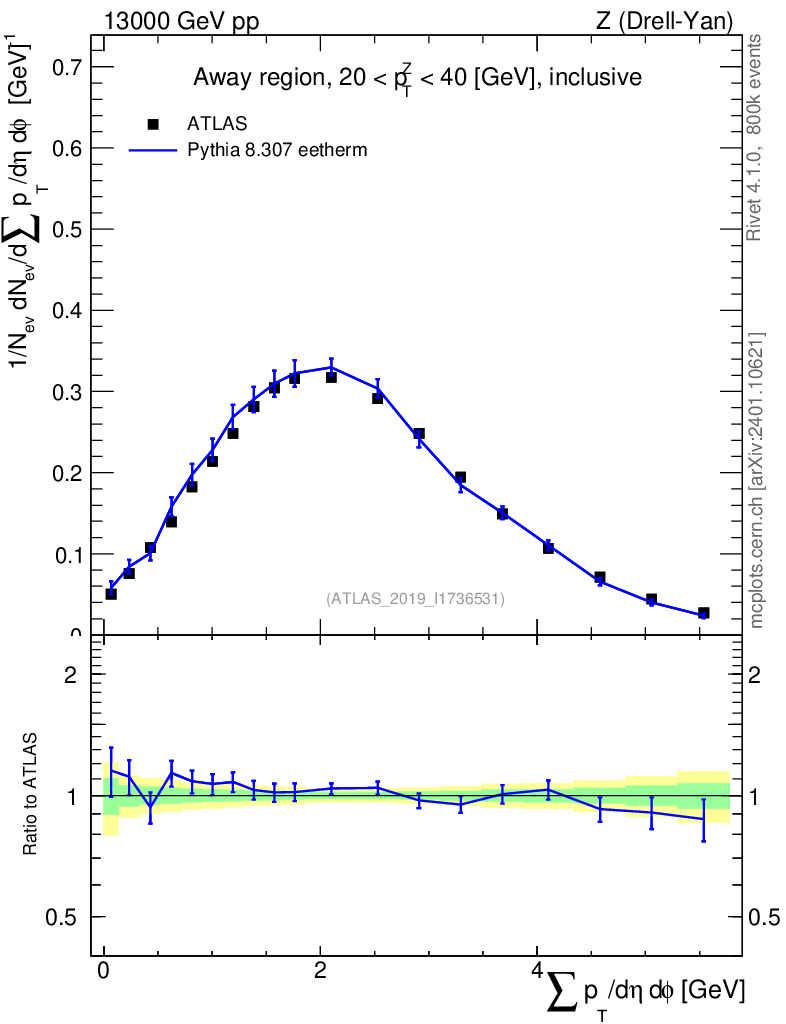 Lines: data, pythia8 8.307 eetherm |