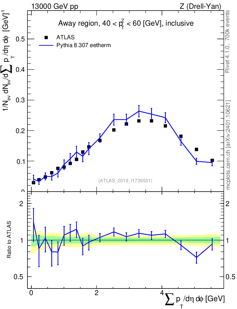 Lines: data, pythia8 8.307 eetherm |