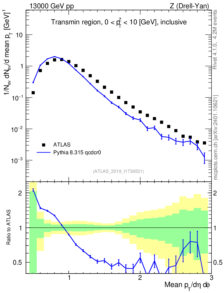 Lines: data, pythia8 8.315 qcdcr0 |