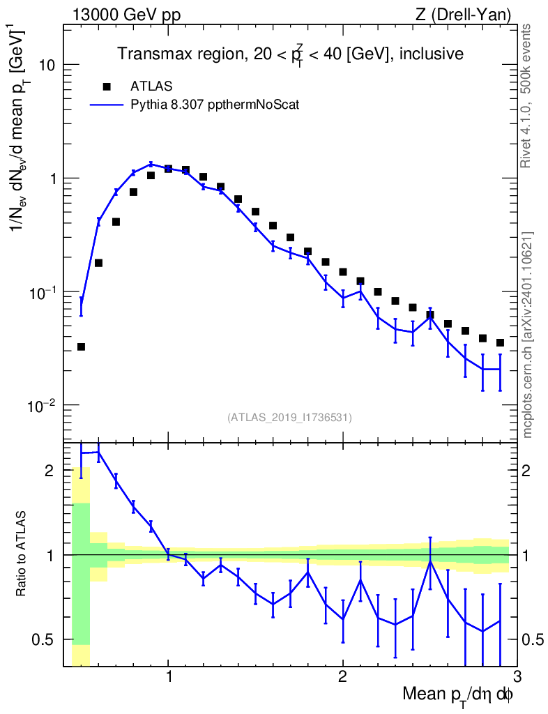 Lines: data, pythia8 8.307 ppthermNoScat |