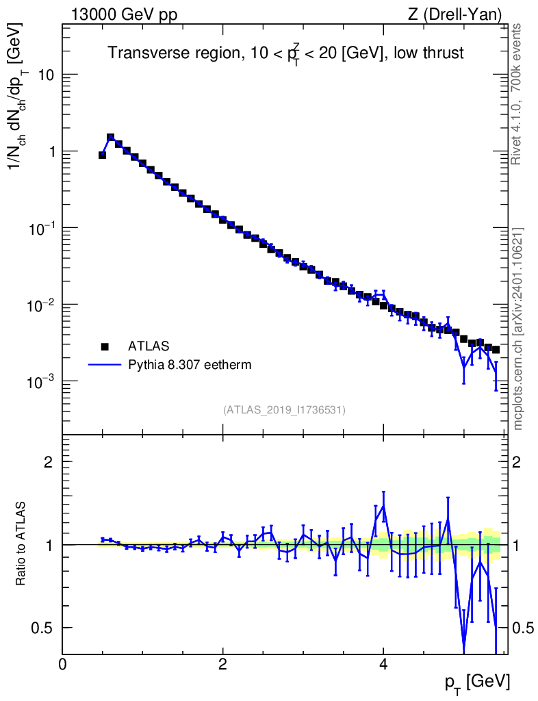 Lines: data, pythia8 8.307 eetherm |
