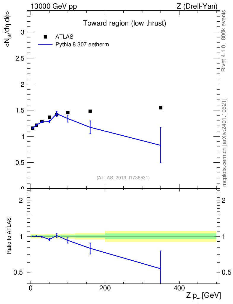 Lines: data, pythia8 8.307 eetherm |