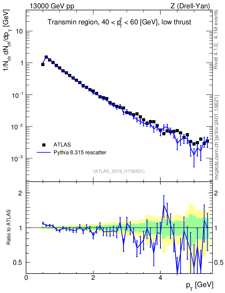 Lines: data, pythia8 8.315 rescatter |