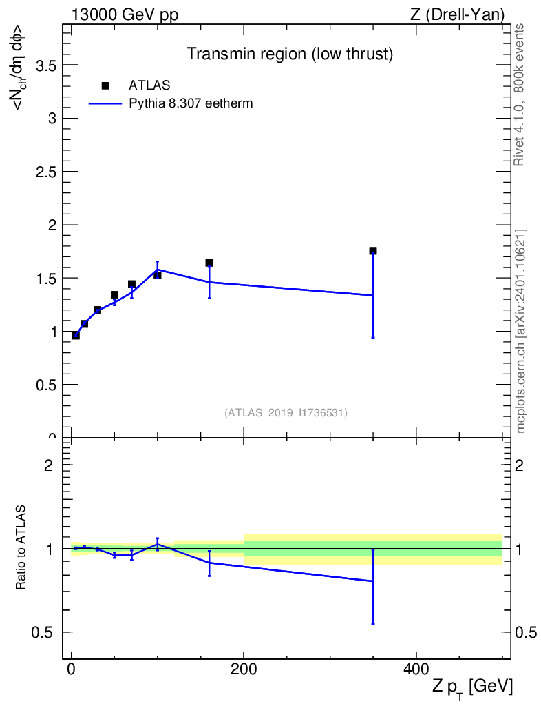 Lines: data, pythia8 8.307 eetherm |