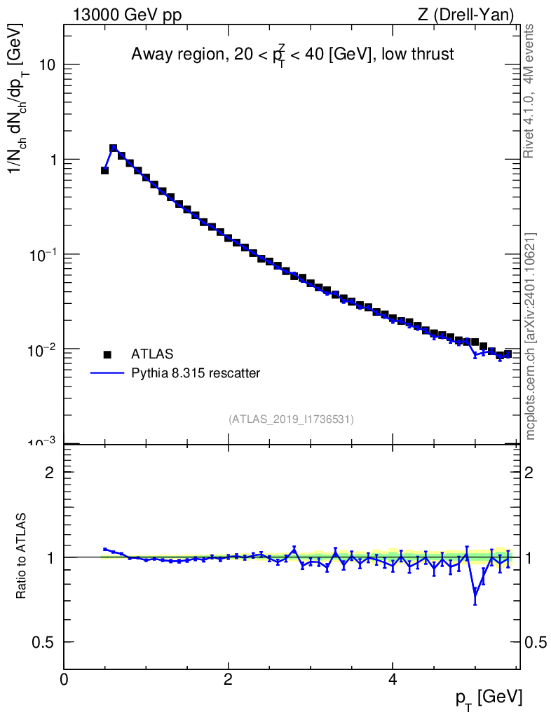 Lines: data, pythia8 8.315 rescatter |