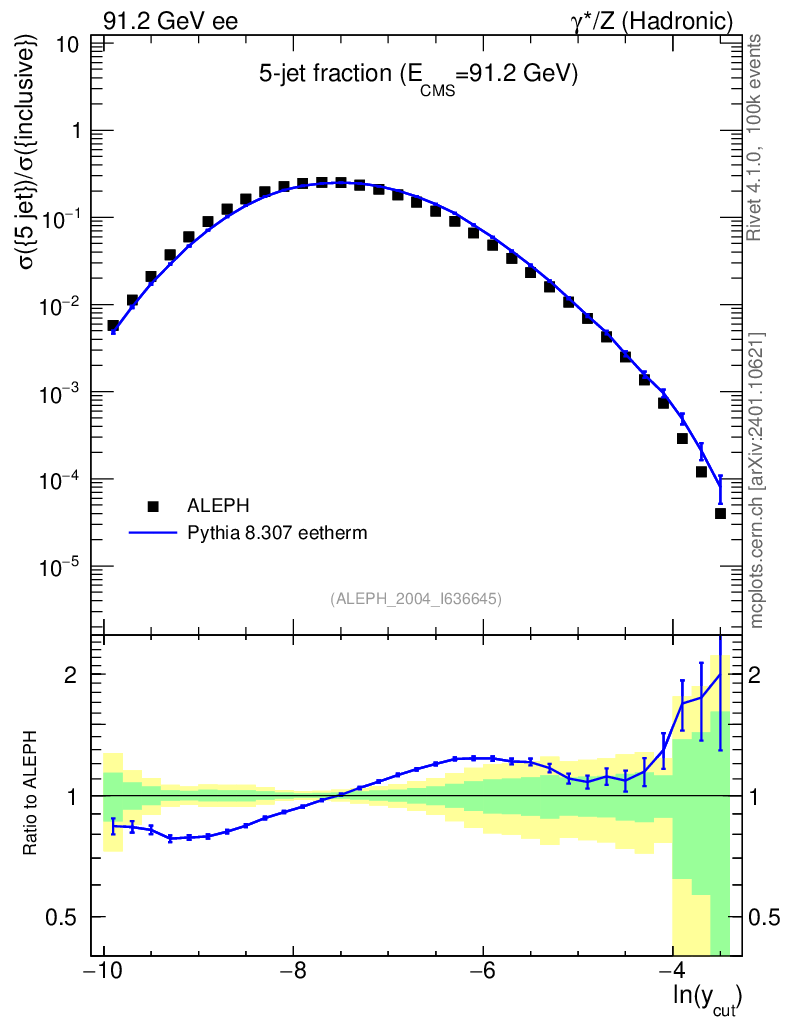 Lines: data, pythia8 8.307 eetherm |