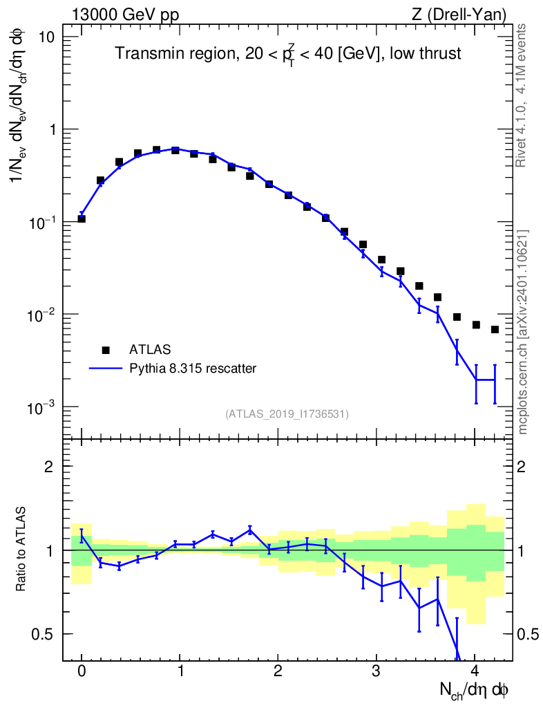 Lines: data, pythia8 8.315 rescatter |