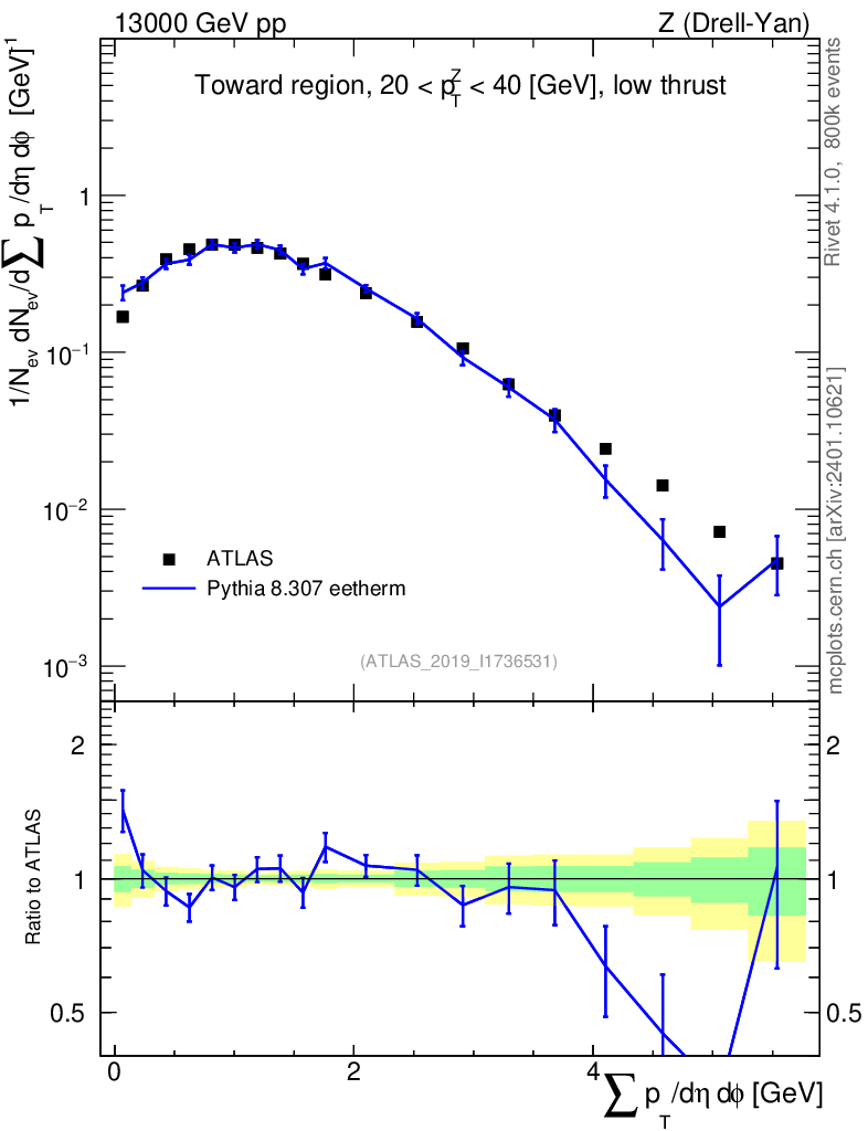 Lines: data, pythia8 8.307 eetherm |