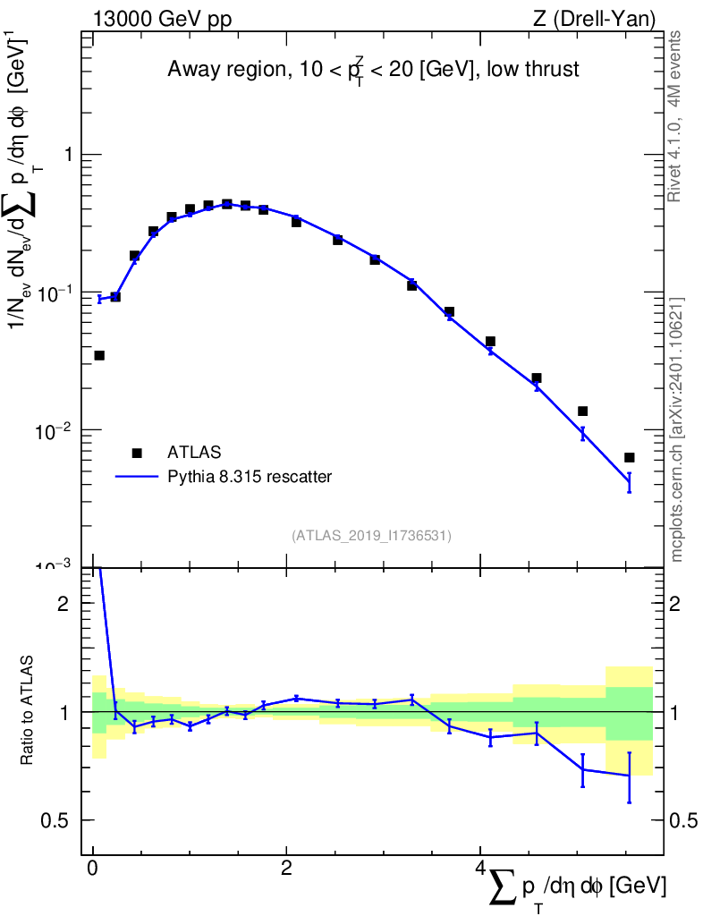 Lines: data, pythia8 8.315 rescatter |