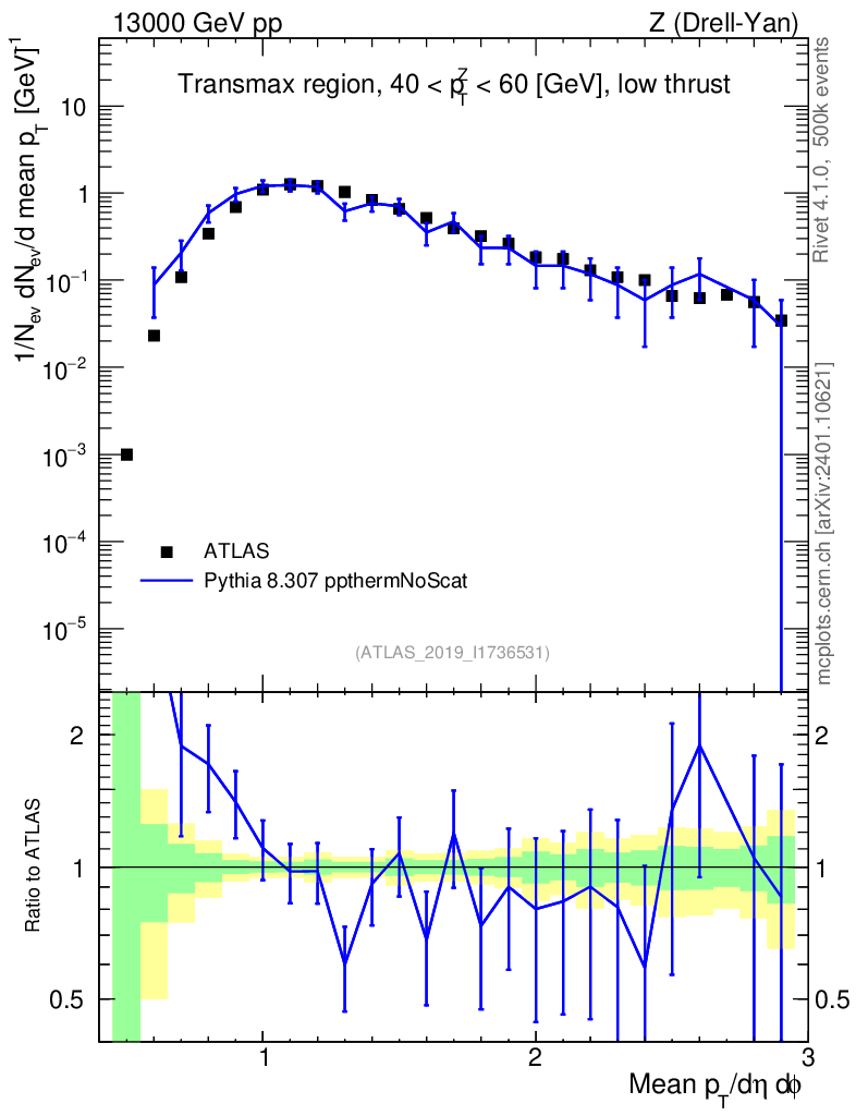 Lines: data, pythia8 8.307 ppthermNoScat |