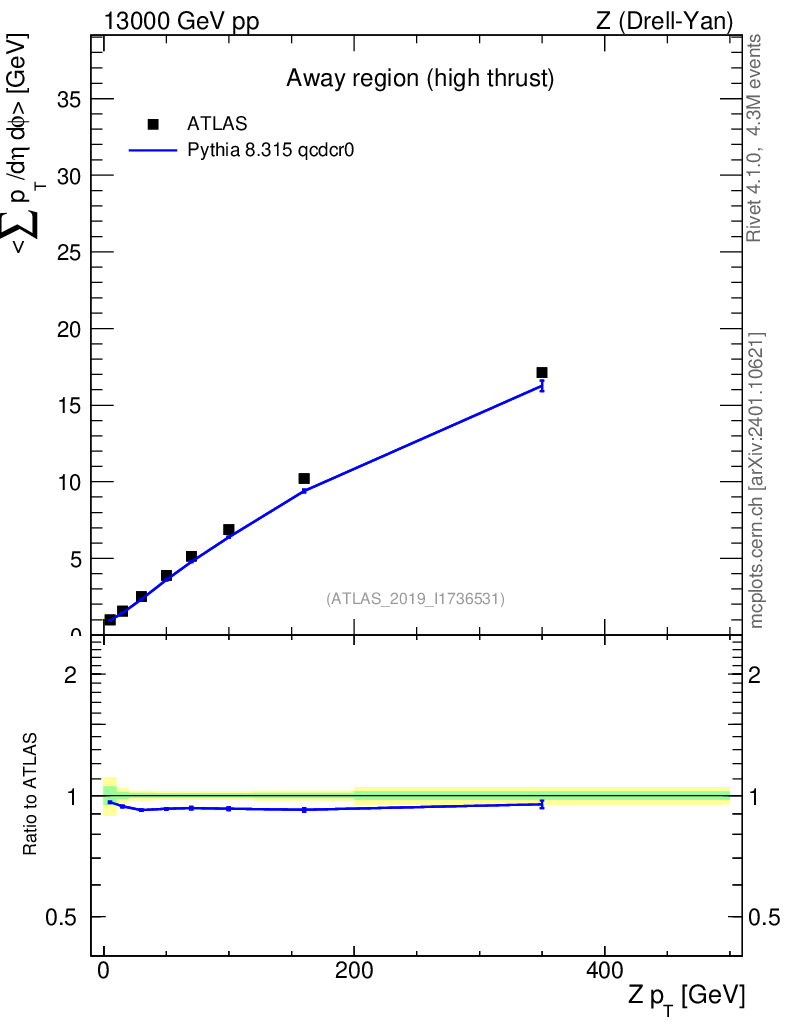 Lines: data, pythia8 8.315 qcdcr0 |