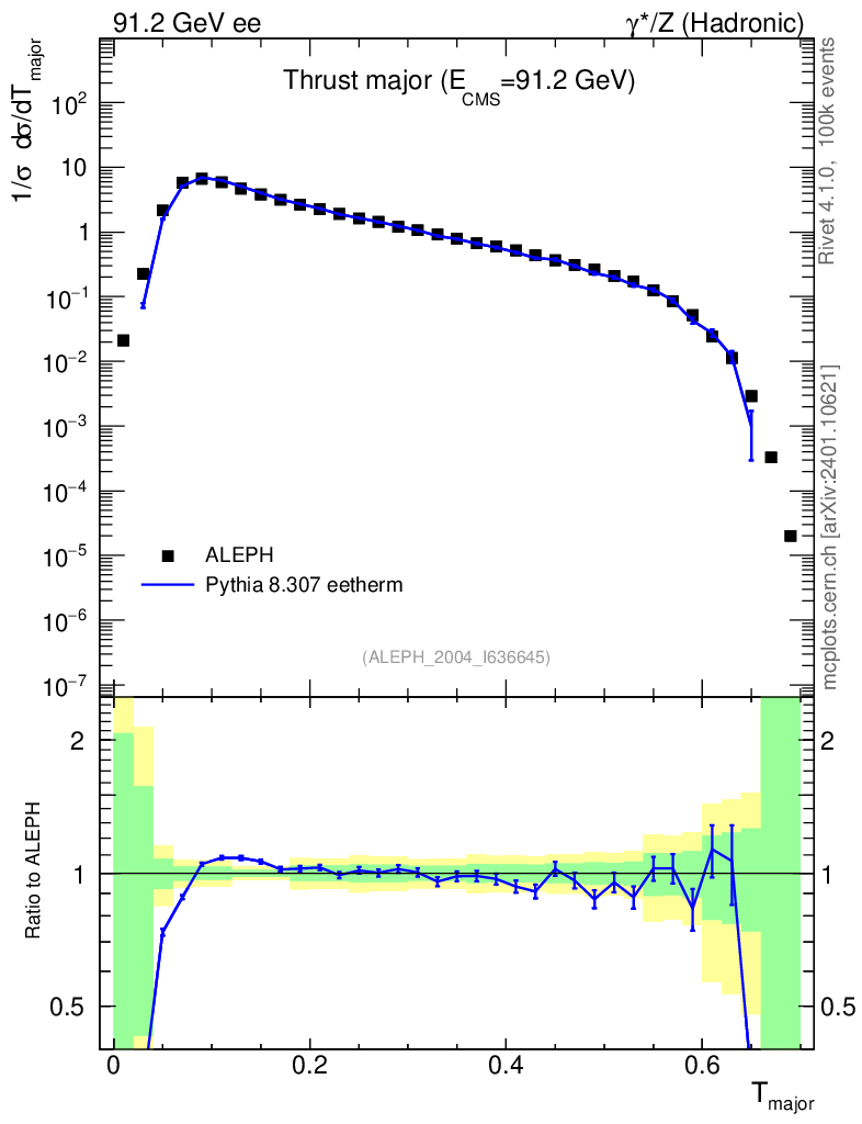Lines: data, pythia8 8.307 eetherm |