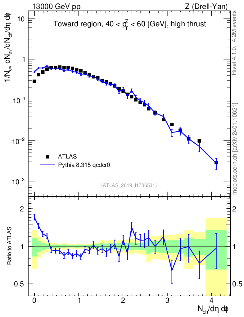 Lines: data, pythia8 8.315 qcdcr0 |