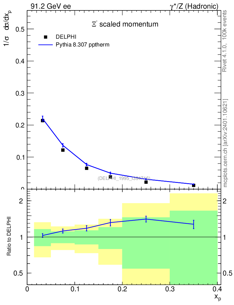 Lines: data, pythia8 8.307 pptherm |