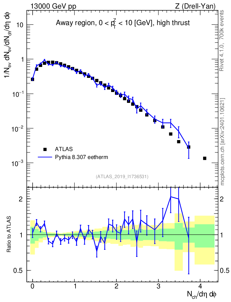 Lines: data, pythia8 8.307 eetherm |