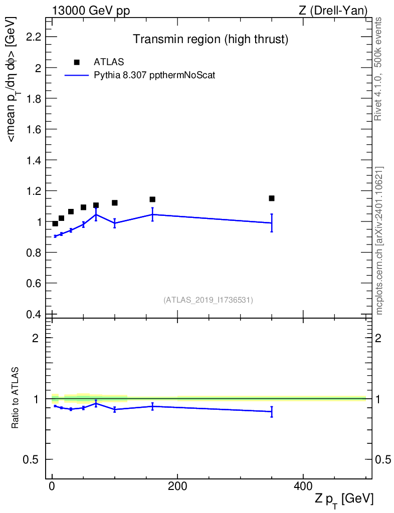 Lines: data, pythia8 8.307 ppthermNoScat |