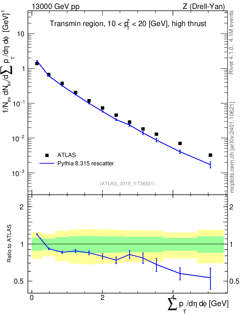 Lines: data, pythia8 8.315 rescatter |