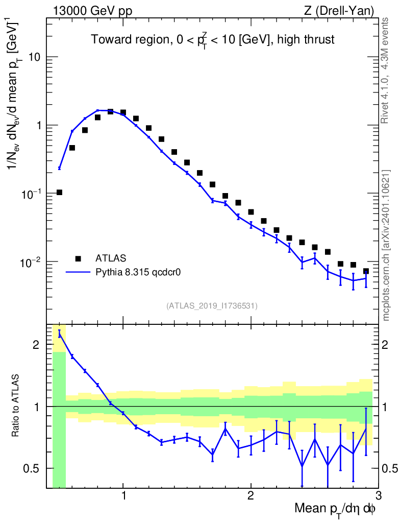 Lines: data, pythia8 8.315 qcdcr0 |
