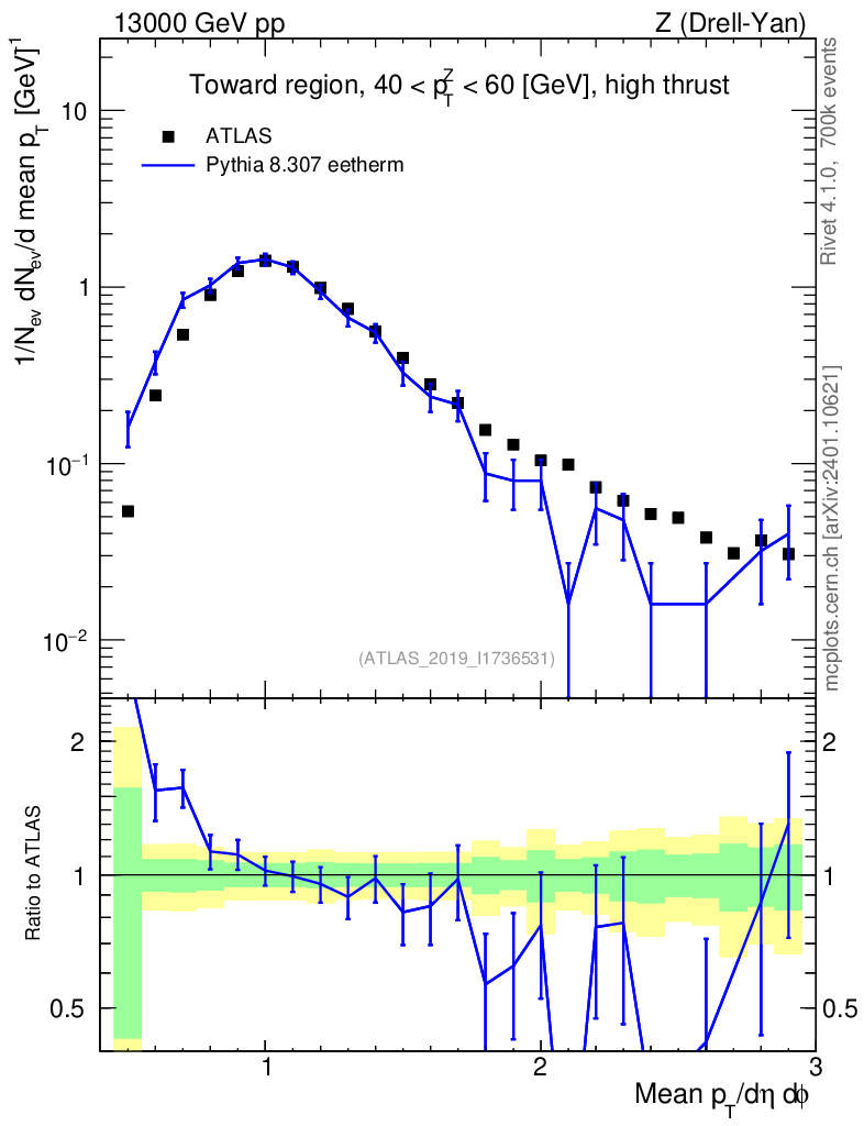 Lines: data, pythia8 8.307 eetherm |