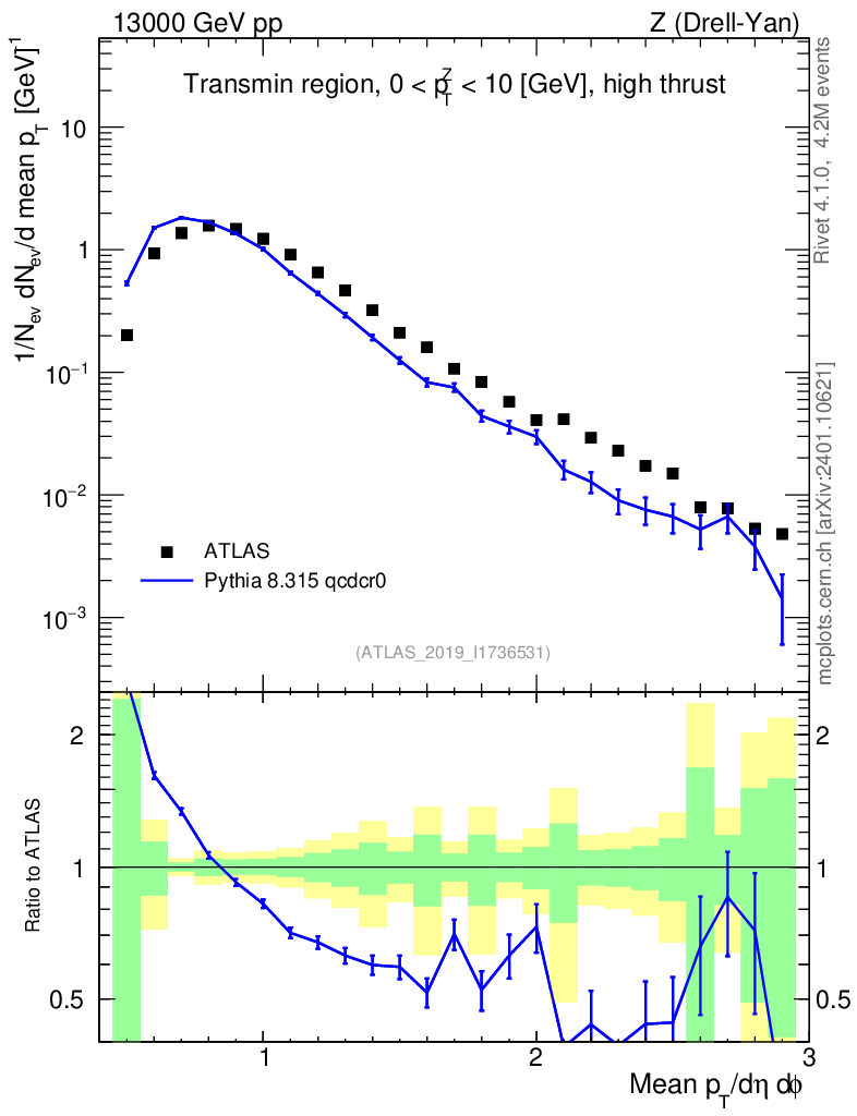 Lines: data, pythia8 8.315 qcdcr0 |