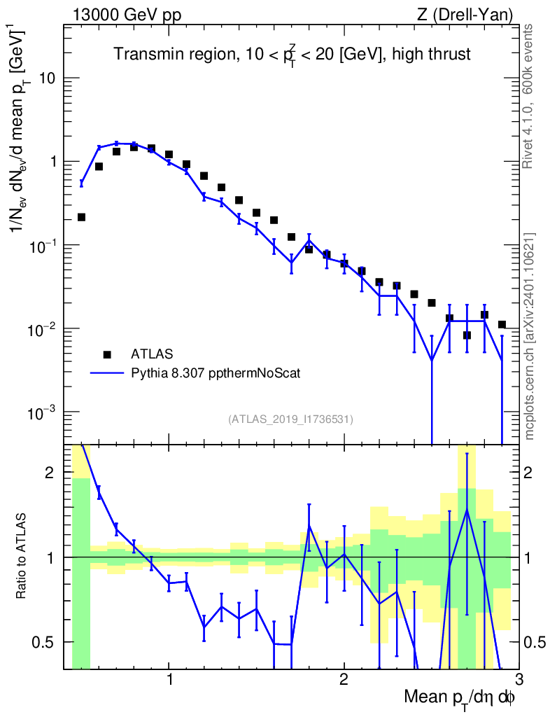 Lines: data, pythia8 8.307 ppthermNoScat |