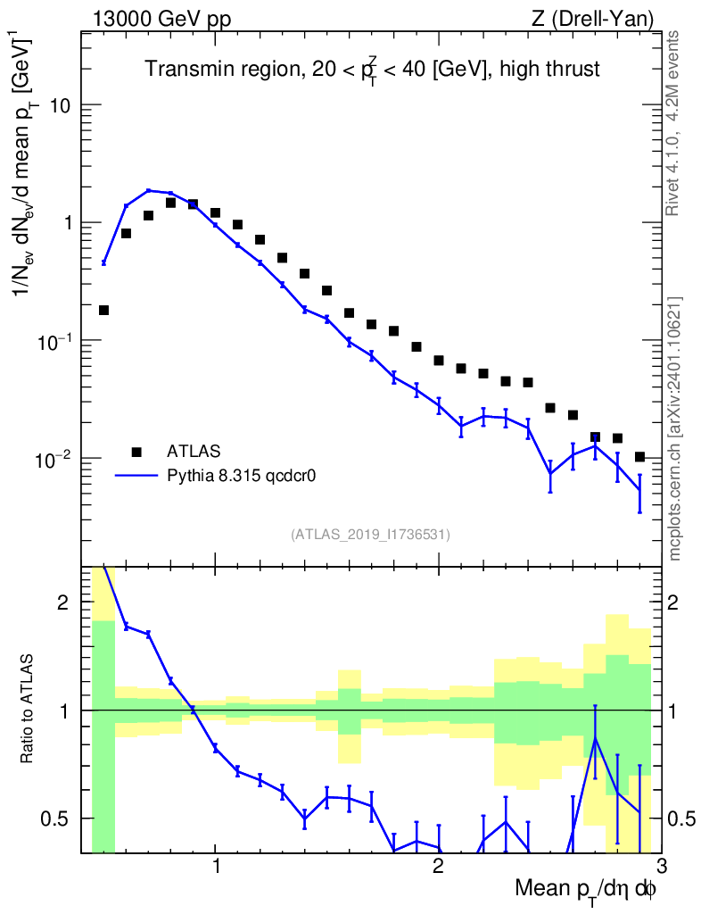 Lines: data, pythia8 8.315 qcdcr0 |