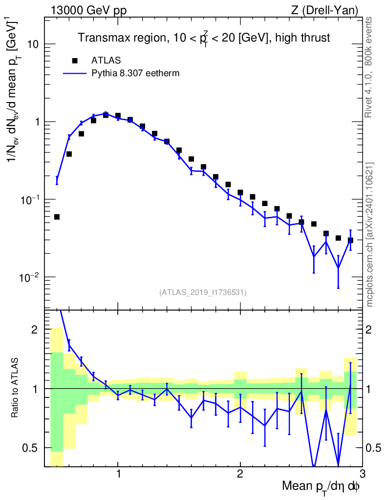 Lines: data, pythia8 8.307 eetherm |