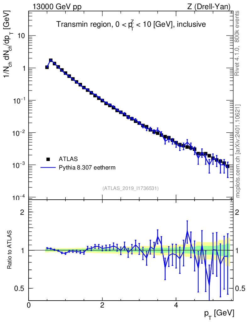 Lines: data, pythia8 8.307 eetherm |