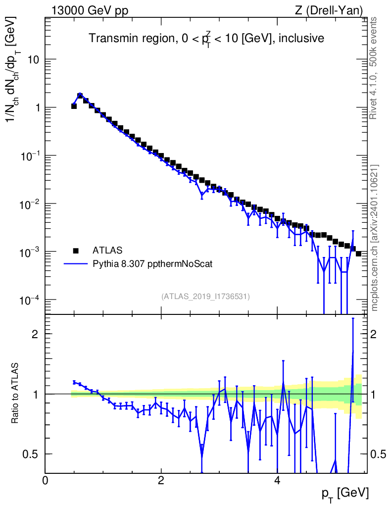 Lines: data, pythia8 8.307 ppthermNoScat |