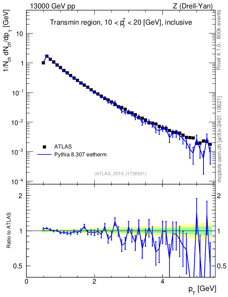 Lines: data, pythia8 8.307 eetherm |