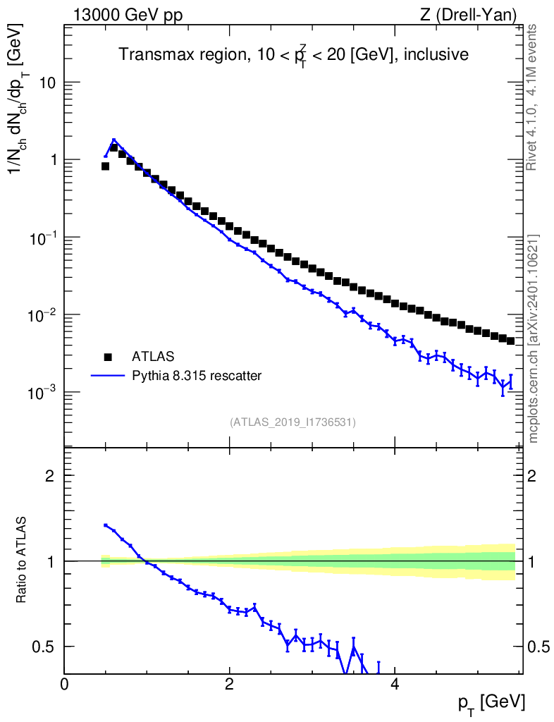 Lines: data, pythia8 8.315 rescatter |