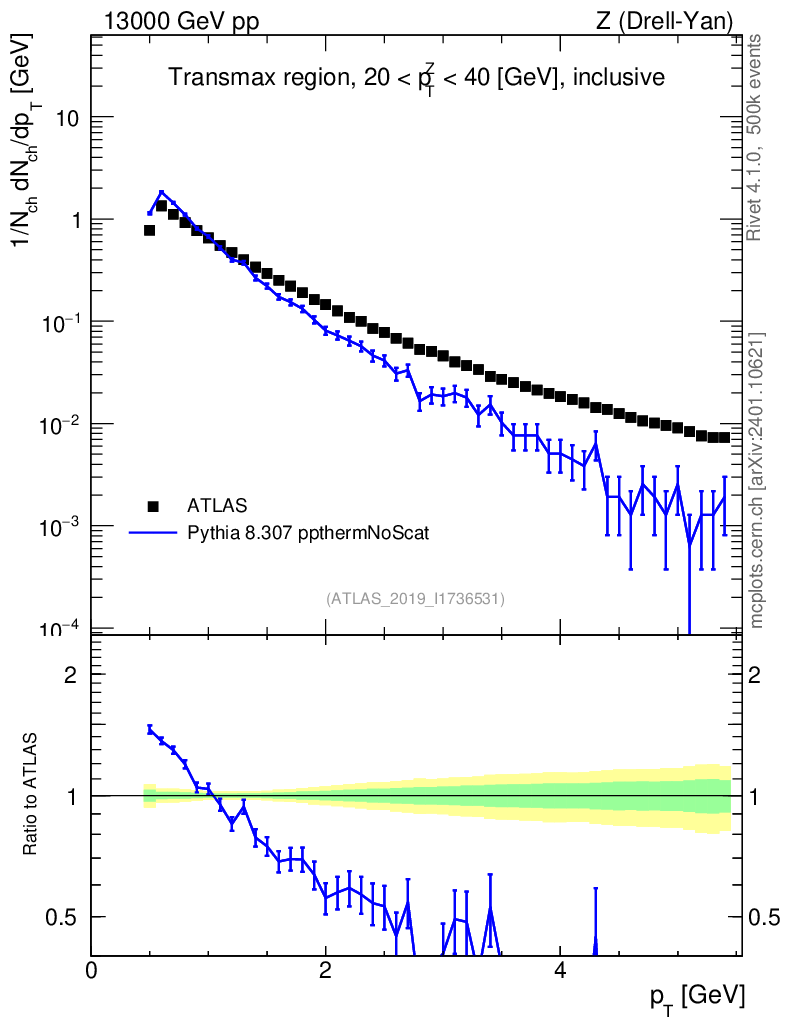 Lines: data, pythia8 8.307 ppthermNoScat |