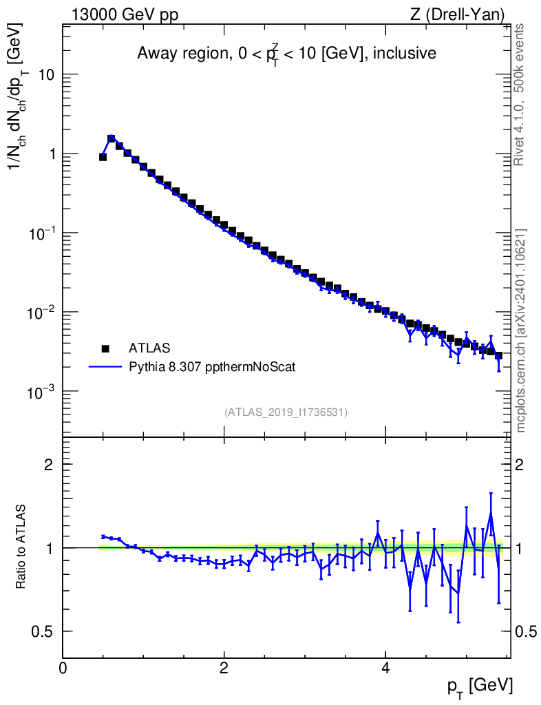 Lines: data, pythia8 8.307 ppthermNoScat |