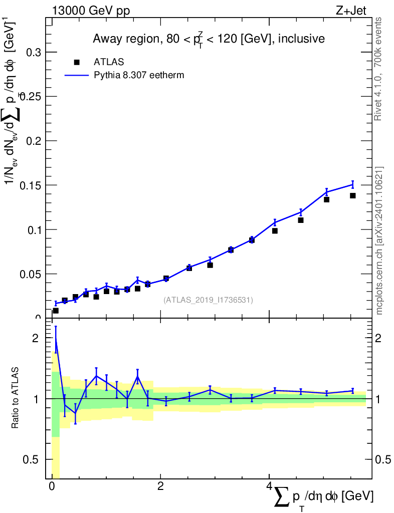 Lines: data, pythia8 8.307 eetherm |
