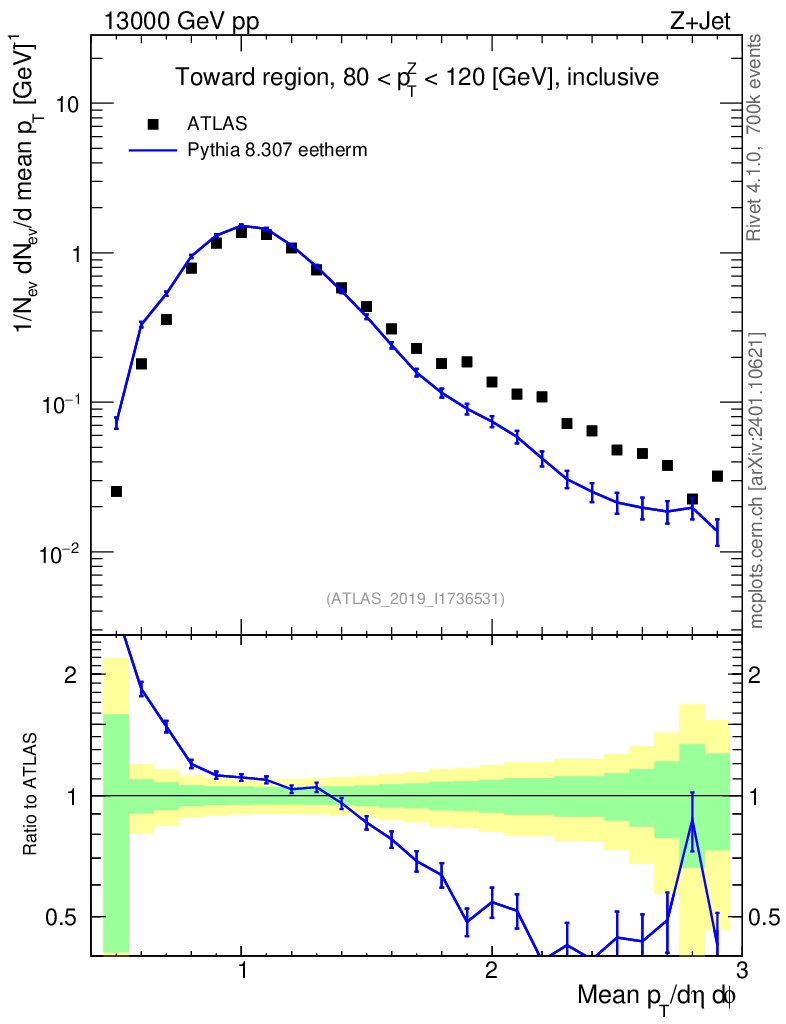 Lines: data, pythia8 8.307 eetherm |