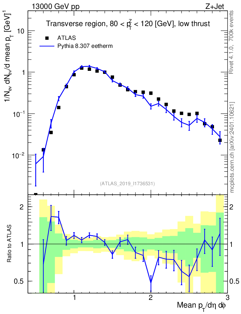 Lines: data, pythia8 8.307 eetherm |