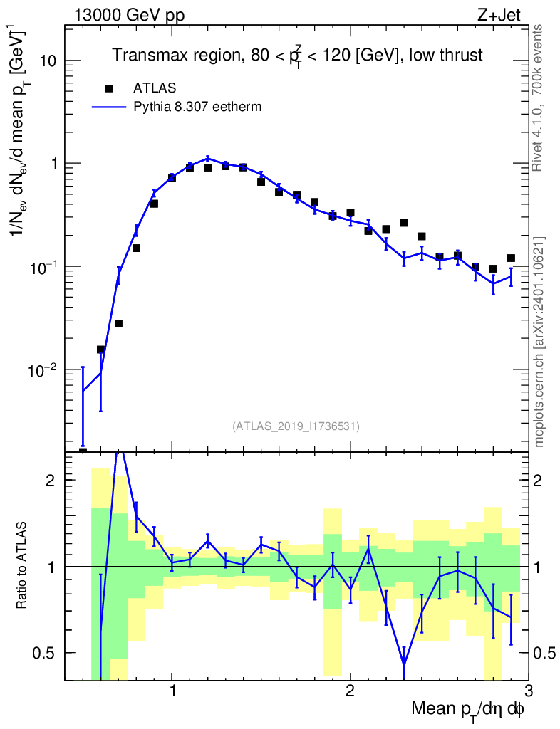 Lines: data, pythia8 8.307 eetherm |