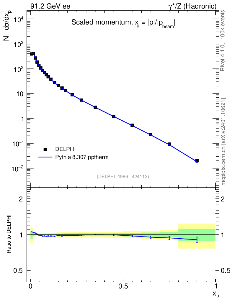 Lines: data, pythia8 8.307 pptherm |