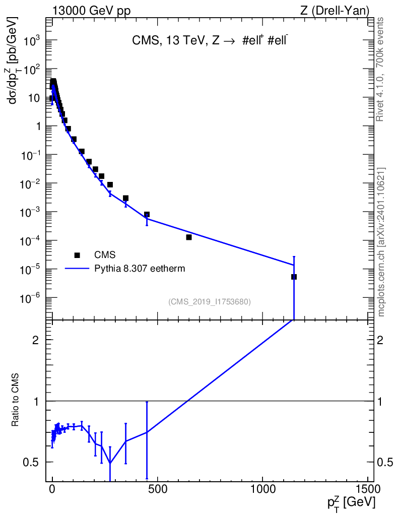 Lines: data, pythia8 8.307 eetherm |