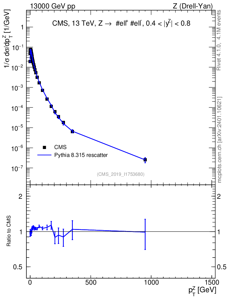 Lines: data, pythia8 8.315 rescatter |