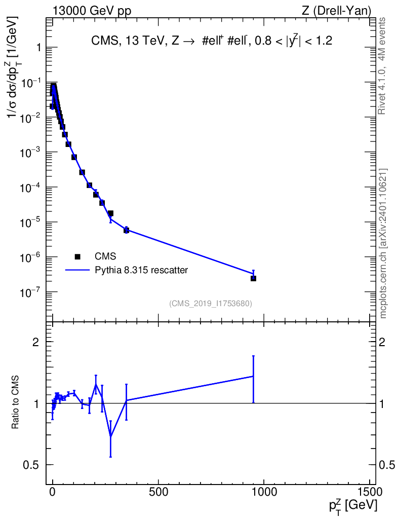 Lines: data, pythia8 8.315 rescatter |